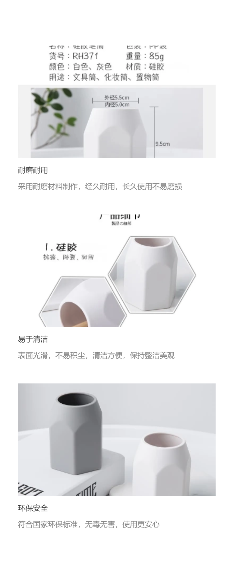 美顺定制硅胶简约笔筒 文具收纳筒 化妆筒 办公文具收纳